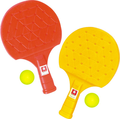 Made of non-toxic virgin plastic. Sturdy & fine finish. Available in multiple colors. Aids hand-eye coordination. For ages 3 yrs & above. 2 table tennis bats along with 2 balls. Packed in a net.